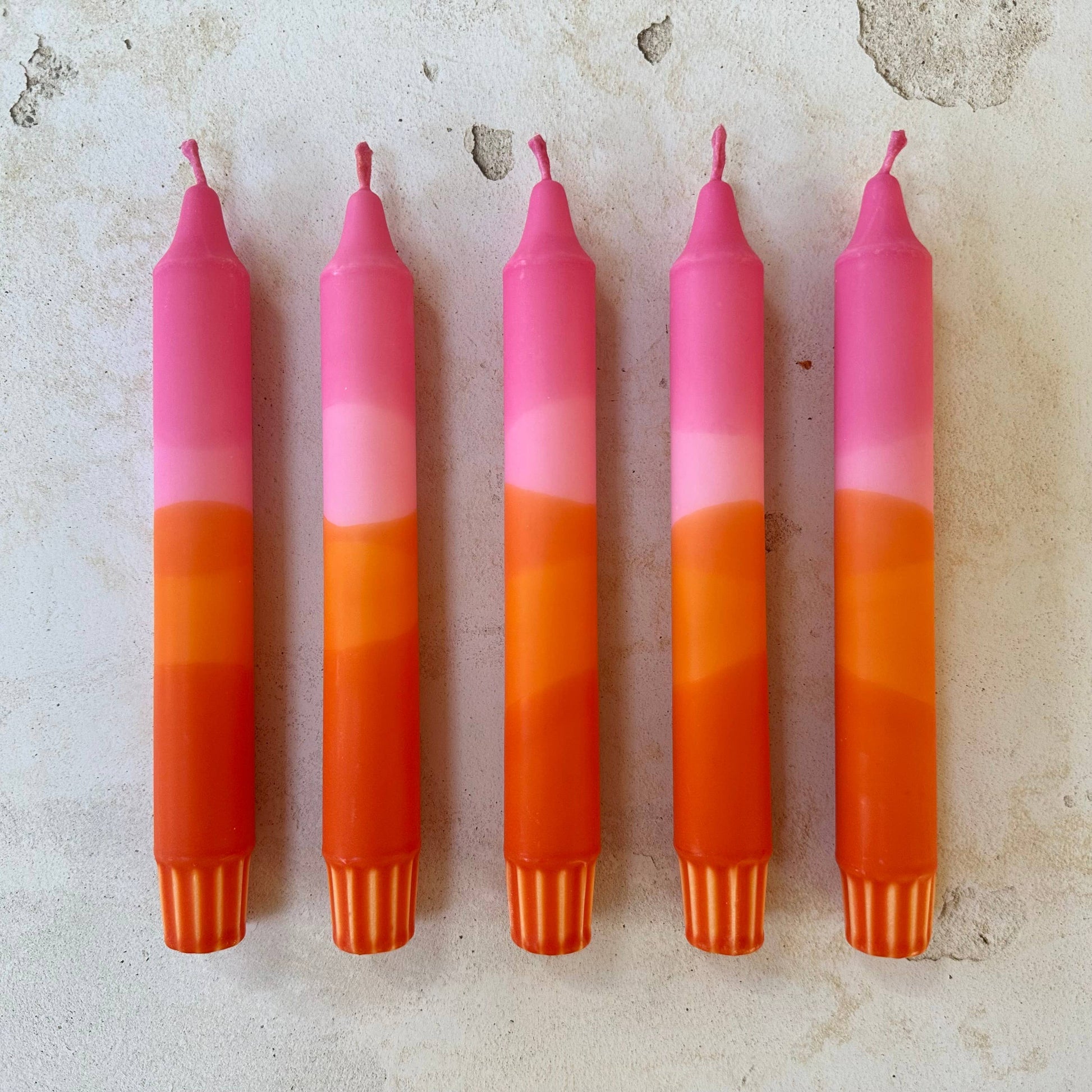 This colourful pair of hand dipped candles in autumnal pink and orange shades are certain to add a pop of colour wherever you place them.