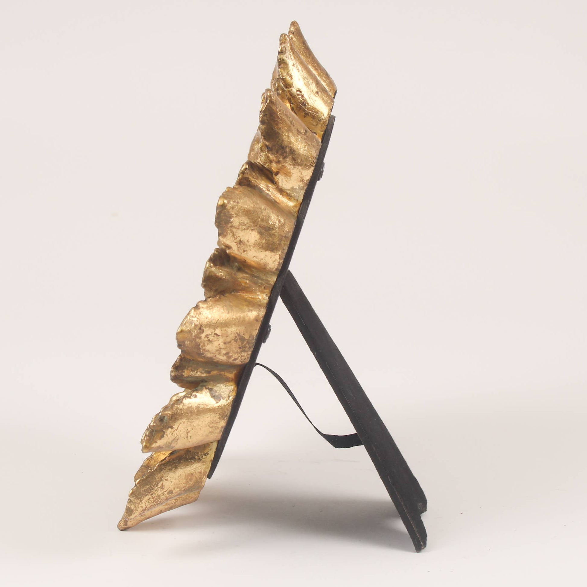 Add a beautiful focal point to your sideboard with this charming crafted photo frame. Featuring a hand-cast resin border of layered, sunflower-style petals and finished in distressed gold leaf.