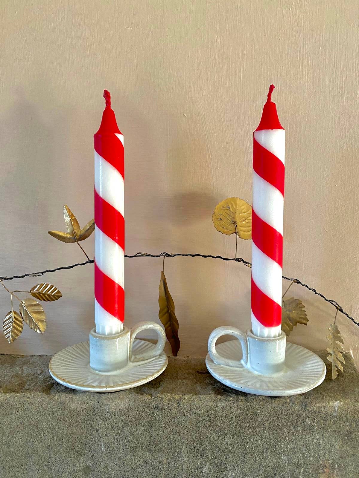 This traditional pair of hand dipped candy cane candles are certain to add a pop of colour wherever you place them.