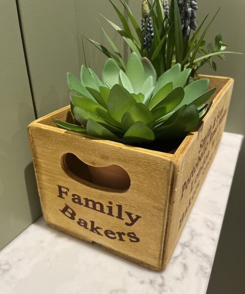 A lovely little wooden box ideal for a couple of little plants on the kitchen or bathroom windowsill.